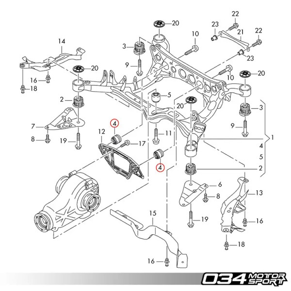034Motorsport - 034Motorsport Billet Aluminum Rear Differential Carrier Mount Insert Kit, B8 Audi A4/S4/RS4, A5/S5/RS5, Q5/SQ5 & C7 Audi A6/S6/RS6, A7/S7/RS7 - 034-505-2016