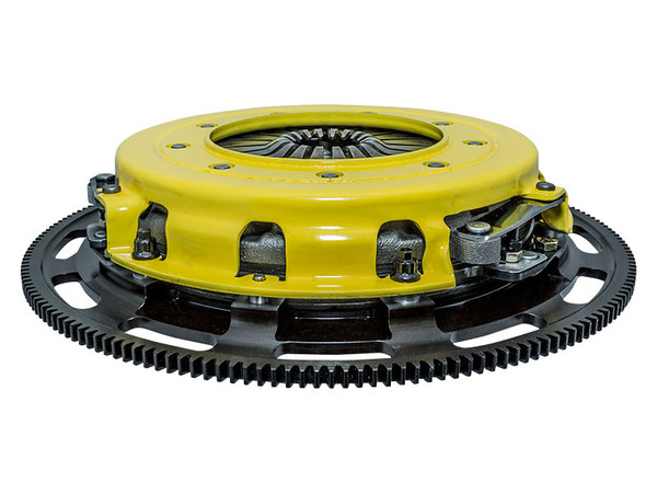 T3R-F07 race, twin disc kit offers twice the number of disc surfaces for better wear, heat capacity and long life compared to single disc kits. These kits use a proprietary Positive Lift Floater System design, which results in quiet operation with no floater rattle and no posts to wear. ACT twin disc kits undergo an exclusive four-stage, heat-treating process on all diaphragms. The ACT twin disc features the ability to adjust for disc wear and provides equal disengagement for discs. ACT's 6-pad rigid race discs are made with high quality, ceramic friction materials. The chrome-moly hub is heat-treated for strength and durability. The lightweight, rigid design allows for quicker shifts and trouble-free service. All ACT twin disc kits include a CNC-machined and dynamically balanced flywheel to ensure trouble-free installation and operation. ACT twin disc kits include a pressure plate, two discs, a floater, flywheel and alignment tool. Some kits may include a pilot bearing and release bearing.