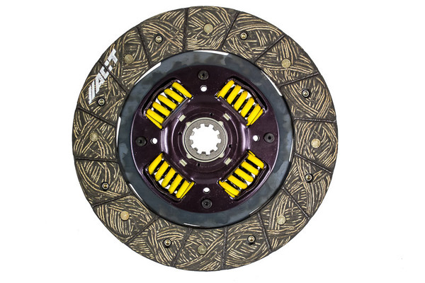 3000801 is a performance street disc and the most popular disc purchased. It features premium organic materials with high copper content for better heat transfer. Performance street discs allow for quicker shifting and smooth engagement. These discs feature a reduced marcel for faster shift action to complement ACT pressure plates. ACT spring-centered assemblies use bushings and cone springs similar to factory clutch discs. This creates frictional dampening, which improves clutch life and reduces noise. Quiet operation with increased strength and reliability.