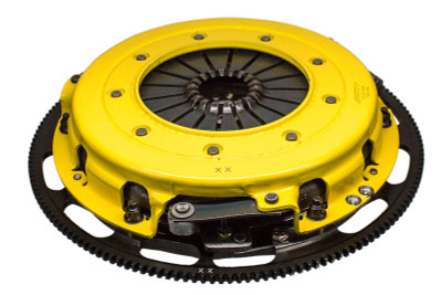 T1R-F01 twin disc kit offers twice the number of disc surfaces for better wear, heat capacity and long life compared to single disc kits. These kits use a proprietary Positive Lift Floater System design, which results in quiet operation with no floater rattle and no posts to wear. ACT twin disc kits endure an exclusive four-stage, heat treating process performed on all diaphragms. The ACT twin disc features the ability to adjust for disc wear and provides equal disengagement for discs. ACT's 6-pad rigid race discs are made with high quality, ceramic friction materials. The chrome-moly hub is heat-treated for strength and durability. The lightweight, rigid design allows for quicker shifts and trouble-free service. All ACT twin disc kits include a CNC-machined and dynamically balanced flywheel to ensure trouble-free installation and operation. ACT twin disc kits include a pressure plate, two discs, a floater, flywheel and alignment tool. Some kits may include a pilot bearing and release bearing.