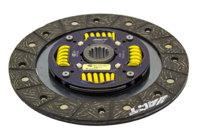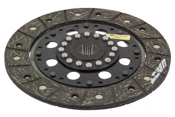 2000802 is a modified rigid-hub street disc featuring premium organic friction materials with high copper content for better heat transfer and steel-backed lining for greater burst strength and durability. These discs are modified with reduced marcel for faster shift action to complement ACT pressure plates. The chrome-moly hub is heat-treated for strength and durability. Rivet design and materials are carefully selected for maximum strength. Lightweight, rigid-hub design allows for quicker shifting and engagement. ACT's street rigid-hub discs provide race-proven performance with street manageability.