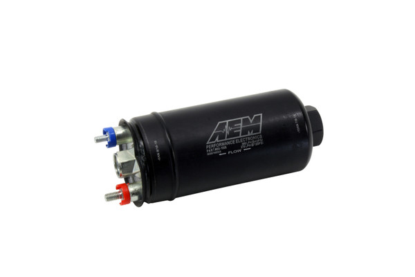 AEM's 400LPH AN Fittings High Flow, High-Pressure Inline Fuel Pump is designed for high performance naturally aspirated and forced induction EFI vehicles. It can be installed externally or in-tank using optional hardware that is sold separately (see part numbers, below). It utilizes the industry standard "044 Style" envelope and -10 AN female inlet and -6 AN female outlet connections for easy installation on new applications and for quick replacement of existing competitor fuel pumps. The 50-1005 fuel pump delivers incredible performance and value.AEM's 400LPH High Flow, High-Pressure Fuel Pump (AEM 50-1005) is capable of supporting over 1,200 HP normally aspirated and a whopping 860 HP at 30 psi boost.* It flows 400LPH (100 gph) at 40 PSI, 340LPH (90 gph) at 73 PSI, and 270LPH (71 gph) at 120 PSI. Complete flow curves from 35 to 120 PSI and current draw vs. fuel pressure charts are available in the Specs section, below.The AEM 400LPH AN Fittings High Flow Fuel Pump is rated for use with ethanol-blended fuels, (E85/E90) and all types of gasoline, but pump life will be diminished if used with 100% ethanol fuels. The inlet thread is a -10 AN female ORB (O-ring port fitting) and the discharge is a female -6 AN ORB (O-ring port fitting).A male -6 to -8 AN discharge fitting with integral high-pressure check valve, terminal nuts, terminal boots and installation instructions are included. Optional accessories that are sold separately include a -10 ORB fitting inlet pre-filter (for use with in-tank installations), and both -8 and -6 discharge adapters without integral check valves. Accessory fittings are hard anodized.