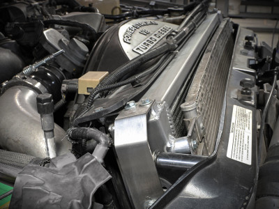 This BladeRunner Street Series Radiator features a 2-1/4" thick tube and fin core which provides greater heat dissipation and better coolant flow than the factory radiator for optimum cooling efficiency. The fabricated end tanks are constructed out of 1/8" aluminum plates for strength and durability. Billet aluminum inlet and outlet for long-lasting reliability. 100% TIG-welded for proven strength and durability. BladeRunner Series Radiators include a brass drain valve with fitting to easily connect a hose for draining coolant. Utilizes the factory mounting locations to provide stability for a hassle-free installation. Brushed aluminum finish with an aFe POWER logo painted on the front.