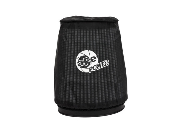 aFe Filter GUARD Pre-Filters protect your performance air filter and extends your filter cleaning intervals by removing large particles like twigs and bugs from the air stream prior to the air filter. This pre-filter is made of a dry weave fabric that does not attract dirt and cleans with soap and water. The aFe POWER logo is silk screened on the pre-filter to let everyone know an aFe Cold Air Intake is powering your rig. Made out of dry weave polyester fabric, the pre-filter repels water and dirt with minimal effect on air flow. Easily cleaned with soap and water. Pre-filters protect your performance air filter and extends your filter cleaning intervals. Each pre-filter is made for the filter its paired with. Just slip on the aFe POWER Pre-filter with its convenient pull tabs for instant protection. Protection and Simplicity. This kit comes with 2 pre-filters.