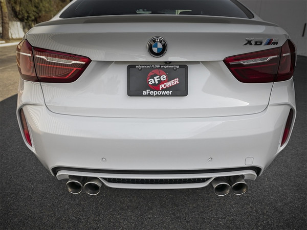Add power, sound and unique style to your BMW X5/X6 M with this aFe Power cat-back system which produced gains of up to +15 horsepower and +23 lbs. x ft. torque as measured on our in-house dyno. Dual 3" to 2-1/2" mandrel-bent, TIG welded, brush finished 304 stainless steel tubing keeps exhaust flowing smoothly for power gains you can feel. The factory exhaust valve motor is used to regulate the exhaust flow from a closed-valve, aggressive tone to wide-open, competition sound.