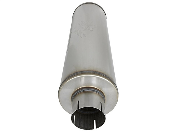 The aFe Universal fit 409 Stainless Steel Performance Muffler is designed to provide a deep, throaty, powerful sound on acceleration, but maintain a smooth sound at idle. This muffler is constructed of brushed finished 409 stainless steel and uses a straight through perforated core with heat resistant packing to reduce backpressure and maximize exhaust flow. You will see increased performance and improved throttle response over the factory exhaust. Also featuring a stamped aFe Power logo for an aggressive style. Muffler Specifications: 3-1/2" Center Inlet /Outlet, 24"L Body Diameter. All aFe exhaust systems are engineered and manufactured i n our Corona, California manufacturing facility.