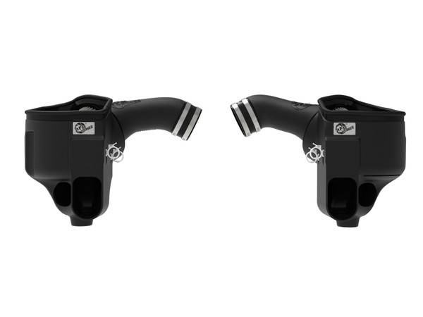 These 360-degree radial flow air filters feature a 4" flange and our oil-free Pro DRY S media with three layers of synthetic media for maximum convenience. Their progressive layering provides great filtration efficiency and dust holding capacity, while not requiring the use of oils. This media is best suited for street use. The included massive air filters are surrounded by open-element XLPE (cross-linked polyethylene) polymer housings that minimize warm engine air for maximum performance. Their open design allows for easy viewing of their air filters and delivers an aggressive Air Intake sound. In addition to the system's built-in air inlets, optional Dynamic Air Scoops (sold separately) are available to bring more cool air from the front of the vehicle into the intake housing (PN 54-12489-C).This system features high quality, computer-designed, dyno-tuned intake tubes to achieve maximum power gains while maintaining a perfect fit. Their XLPE material is heat soak resistant and extremely durable. This is a direct fit intake system that utilizes factory mounting points and requires no cutting or modifications. All necessary clamps, couplings, and hardware are included. Its revolutionary design, featuring our patent pending filter-to-housing interface, uses half the number of parts of a traditional cold air intake system.