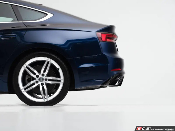 Upgrade your exterior styling with the ECS Tuning Gloss Black Rear Diffuser for your Audi B9 A5 S-Line. This diffuser was engineered and designed in-house to add a more aggressive appearance to the rear of your vehicle that matches with the factory appeal of your Audi. An exclusive design only available through ECS Tuning, this rear diffuser will be sure to catch attention and turn heads. The diffuser is crafted of a UV stabilized ABS polymer to achieve it's deep high gloss shine and provides an aggressive and sporty style that's sure to set your vehicle apart from the rest. Features a single tip/dual outlet design to fit the factory and most aftermarket exhaust systems and is designed to accept exhaust tips up to 4" in diameter.