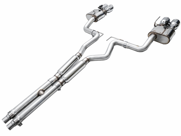Introducing the AWE SwitchPath™ Cat Back Exhaust for the Ford S650 Mustang GT. This system maintains all the customization options of the factory active exhaust while liberating the Dark Horse’s 5.0L engine with just a button press or a throttle punch. Engineered to blend sophistication with raw power, SwitchPath™ ensures your comfort with its valved design. Featuring a complete 3” build with modular inlets, it includes slip fit adapters for seamless integration with factory headers, and offers a dual 3” connection option for those seeking a more aggressive setup. With tier-1 valving, drive modes, customized settings, and programmable buttons, it swiftly responds to your commands. The precision H-pipe delivers a deep, rich muscle tone with minimal rasp, distinguishing it from X-pipe alternatives. Additionally, straight-through bullet-style resonators in the mid pipes further diminish rasp, particularly beneficial for drivers contemplating header upgrades. On the performance front, it offers dyno-verified gains of +8 hp and +8 lb-ft of torque at the wheels. AWE's SwitchPath™ Cat Back is fully emission-friendly, integrating seamlessly with factory emissions equipment. The package is completed with quad 4” slash-cut, double-walled tips, available in chrome silver or diamond black. Crafted in PA, USA, from US-sourced .065”-wall T304L stainless steel, every aspect is meticulously engineered, designed, and manufactured in-house at AWE. Backed by AWE's Lifetime Warranty, No CEL Light Guarantee, and Perfect Fitment Guarantee.