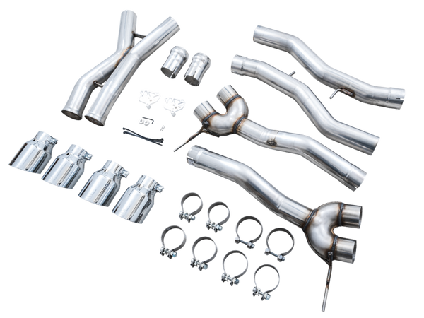 AWE’s Track Edition takes all of the precision engineering and performance of its SwitchPath™ counterpart, minus the valved muffler in the rear. The result is a constant “valve open” mode, at an affordable price with additional weight savings. If you’re craving rich and rowdy tones at all times, and a hefty 13 lb weight savings (with AWE mid-pipes), this is your dose of steel. The Track Edition Exhaust, also 50 state legal like its SwitchPath™ sibling, comes complete with AWE valve simulators to accommodate your factory exhaust valve motors. Happy ECU, happy life. And when it comes to showing off the party out back, the system comes with quad 4.5” double-walled, slash-cut tips available in chrome silver or diamond black. The exhaust features inlet adapters to mate to the factory mid section. When pairing AWE Mid-Pipes to the SwitchPath™ or Track Edition Exhausts, the aforementioned adapters are not needed. Due to varying cut points, AWE Exhausts are not guaranteed to mate with another manufacturer’s mid pipes. Note: This version is known to get rowdy, and may be too much for many. For that reason, this particular version cannot be returned due to sound preference. Prepare yourself (Sport+ mode can be pretty raucous)! AWE's No CEL Guarantee, Perfect Fitment Guarantee, and Lifetime Warranty come standard.