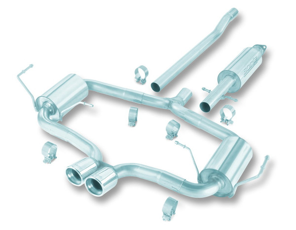 It seems logical that the age-old axiom great things come in small packages was imported to America from Europe. Few vehicles have ever lived up to that by line better than the BMW Mini Cooper. This incredible vehicle is both nimble and powerful, and the supercharged 163-HP engine almost demands a Borla(r) T-304 stainless steel Cat-Back(tm) exhaust system. The unique posture of this race-bred European saloon touring car is well documented, and complimenting BMW engineering and high output engine with the free breathing mandrel-bent genuine Borla(r) Cat-Back(tm) system with Borla(r) custom-tuned performance muffler gives this little parcel of dynamite some real attitude. Borla(r) offers 2 systems for the Cooper S, Touring sound #140120 for 2004-06 hatchback & 2005-2008 convertible, and the more aggressive sounding S-Type system #140119 for 2004-06 hatchback. All Borla(r) exhaust components are tuned for maximum output from any other aftermarket performance upgrade. System features mirror polished T-304 stainless steel tips. Borla(r) features high-quality aircraft grade T-304 austenitic stainless steel (superior to 409 or aluminized), mandrel bent tubing with race-bred straight-through mufflers, unduplicated great Borla(r) sound of power, backed by an unsurpassed written Million-Mile Warranty. Genuine Borla(r), see it, hear it, feel it then you too will know why Winner's Choose Borla(r)!
