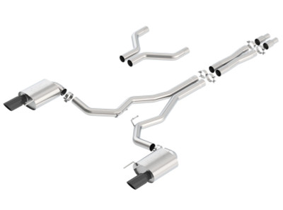 These 3" diameter Tail Pipes feature single 4.5" round black chrome on T-304 stainless steel tips on each tail pipe. They will fit with either Borla(r) 60728, 60736, or 60737 mid-sections / muffler assemblies, or the Original Equipment (O.E.) mid-section/ muffler assembly. Includes heatshields on pipes. Using Borla(r) Stainless Steel Polish p# 21461 is NOT recommended with these black chrome tips. We suggest cleaning the tips with hot water and a microfiber cloth. Tail Pipes with Brawler style black coated T-304 stainless steel tips, or carbon fiber tips are also available. Built from premium T-304 stainless steel, superior to T-400 series knockoffs (such as 409), to give you the absolute best in performance and durability. Ultra-smooth mandrel bends ensure maximum flow & power, and precision computer numerical control (CNC) manufacturing ensures an accurate fit Best of all, Borla(r) stands behind every Tail Pipe with a Million-Mile Warranty. Just what you'd expect from the world's most experienced (and most winning) exhaust brand.