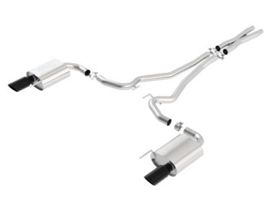 EXCEPT Convertible. Recommended only for vehicles with substantial engine upgrades that require a 3" exhaust. System contains a merge X-Pipe for increased performance and improved sound. This system features the aggressive ATAK(r) sound and exits through 4" black chrome on T-304 stainless steel tips. Using Borla(r) Stainless Steel Polish p# 21461 is not recommended with these black chrome tips. We suggest cleaning the tips with hot water and a microfiber cloth. Borla(r) Cat-Back(tm) and Axle-Back exhaust systems feature patented straight-through and multi-core technology designed to unleash hidden horsepower. Increased exhaust velocity adds power, driving excitement, fuel economy, and the distinctive Borla(r) Sound of Power respected by motoring enthusiasts everywhere. Each system is built from premium T-304 stainless steel, superior to T-400 series knockoffs (such as 409), to give you the absolute best in performance and durability. Ultra-smooth mandrel bends ensure maximum flow & power, and precision computer numerical control (CNC) manufacturing ensures an accurate fit. Best of all, Borla(r) stands behind every system with a Million-Mile Warranty. Just what you'd expect from the world's most experienced (and most winning) exhaust brand.