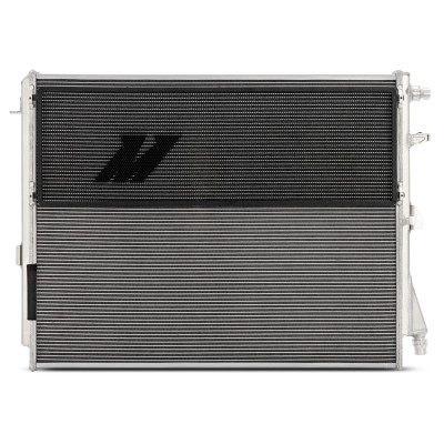The CSF Heat Exchanger features a 2-Row (vs OEM single row) Core that is 42mm thick with CSF's Exclusive B-Tube Technology. Increasing the size of the core and end tanks adds to the overall volume of the system which helps absorb more heat. The more efficient core not only helps dissipate more heat from the system, but also provides better airflow into the radiator that sits behind the heat exchanger. For vehicles equipped with the ZF8 Automatic Transmission, the heat exchanger core specifications were design concurrently with CSF's new Race-Spec Dual Core Transmission Oil Cooler (CSF #8221). The two included Black Rock Guards offer full protection for the heat exchanger (above and below the crash bar), especially when paired with aftermarket "open face" race style grilles. These grilles have become quite popular for performance and aesthetics, and keeping your heat exchanger safe from debris is very important. With well over 100 track hours worth of testing and thousands of miles on the road, you can be assured that the CSF's new High-Performance Front Mount Heat Exchanger has been thoroughly tested and vetted.