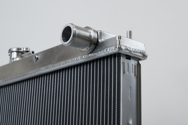 The 2-Row 42mm core greatly not only increases the fluid capacity of the radiator, but also improves the cores ability to dissipate heat. CSF's Exclusive B-Tube Technology increases the heat transfer by approximately 15% over regular oval welded tubes. In addition, the super-efficient multi-louvered fins maximize airflow through the core for the best possible performance. More cooling rows also improve the overall efficiency of the radiator. More cooling tubes means more surface area for the coolant's heat to dissipate from. Each end tank is CNC machined billet aluminum giving them incredible strength and durability. CNC machining offers incredible precision and uniformity. The results are perfectly produced end tanks that perfectly match up with the ends of the 42 mm core. Hand TIG welding joins the tanks to the core creating the strongest radiator on the market for the R33 Skyline. Each radiator includes a 1.4 bar high pressure cap with an embossed CSF logo. High pressure radiator caps raise the boiling point of coolant. This helps protect the system from boiling over at higher operating temperatures. While the radiator is designed to keep the system from reaching such temperatures, it is always good to have extra protection for situations where the coolant gets too hot. The CSF #7219B comes in Black. Also available in a raw billet aluminum finish (CSF #7219).