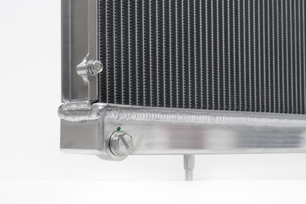 The 2-Row 42mm core greatly not only increases the fluid capacity of the radiator, but also improves the cores ability to dissipate heat. CSF's Exclusive B-Tube Technology increases the heat transfer by approximately 15% over regular oval welded tubes. In addition, the super-efficient multi-louvered fins maximize airflow through the core for the best possible performance. More cooling rows also improve the overall efficiency of the radiator. More cooling tubes means more surface area for the coolant's heat to dissipate from. Each end tank is CNC machined billet aluminum giving them incredible strength and durability. CNC machining offers incredible precision and uniformity. The results are perfectly produced end tanks that perfectly match up with the ends of the 42 mm core. Hand TIG welding joins the tanks to the core creating the strongest radiator on the market for the R32 Skyline. Each radiator includes a 1.4 bar high pressure cap with an embossed CSF logo. High pressure radiator caps raise the boiling point of coolant. This helps protect the system from boiling over at higher operating temperatures. While the radiator is designed to keep the system from reaching such temperatures, it is always good to have extra protection for situations where the coolant gets too hot. The CSF #7217 comes in a raw billet aluminum finish. Also available in Black (CSF #7217B).