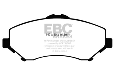 EBC Yellowstuff is an aramid fibre based brake compound with high brake effect form cold and is possibly one of the first ever compounds that can be used for STREET AND TRACK DRIVING. These pads do not require warm up but do get even stronger under the heat of hard driving. These are not a low dust pad and if your desire is for a low dust premium street use pad, you should consider EBC Redstuff.When considering full race use, Yellowstuff has been a strong favourite, having been used for two years in the Swedish Camaro Cup and at numerous other race events where a stock caliper system is fitted.It is also the choice of 90-percent of the Mazda MX5 Miata competitors in the UK race series and has an unblemished record as rotor friendly track pad for vehicles up to 2000 lbs weight or 200 BHP.In the USA the SCCA and NASA drivershave been testing Yellowstuff with feedback and good reports POURING in from a 543 test driver major market proving event with these groups. Read that figure again 543 test drivers.There is no guesswork here.