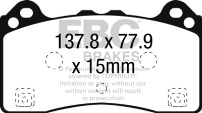 There are TWO reasons our customers love Redstuff, First because they are the lowest dust pad we have encountered by reducing dust by 60-90-percent. Plus the minimal dust you see is very easily removed with a simple sponge wash as it contains no steel fibre particles as in ALL OTHER pads. Second they brake like an alligator right from cold (as good as Original pads or better) and just get better as they heat up.This material is a Synthetic Fiber based brake compound enhanced with ceramic particles. If you have previously tried EBC redstuff (pre-ceramic compound) this material is light years ahead. It lasts longer; it brakes better and is quieter. Being a hard wearing pad, bed-in times can be as long as 1000 miles and drivers must be patient until the pad takes up the shape of their disc (brake rotor). This is a truly impressive fast road pad for repeated heavy braking.It emits far less dust than semi-metallic pads and has been proven to stop a passenger car/sedan/sport compact/hot hatch 13 metres quicker than OEM pads from 100mph/160kph. Features EBC Brake-In surface coating which conditions rotor surface and accelerates pad bed-in. Nominal friction coefficient 0.5 with approx. 50-percent dust reduction.Most EBC Red Ceramic pads are approved to ECE R90 brake safety regulation.