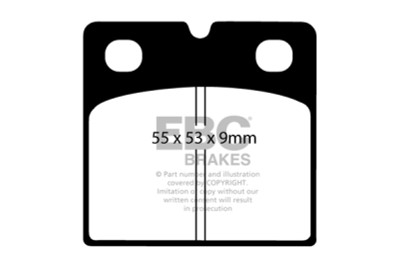 RP-X(TM) Racing Front Brake Pads by EBC(R). EBC Racings RP-X compound is an ultra-high performance track and race pad designed for performance vehicles driven hard on track and for dedicated race cars. RP-X has a very stable friction coefficient of 0.55 mu up to and beyond 850 C, making it an excellent performer for even the most demanding vehicle applications.