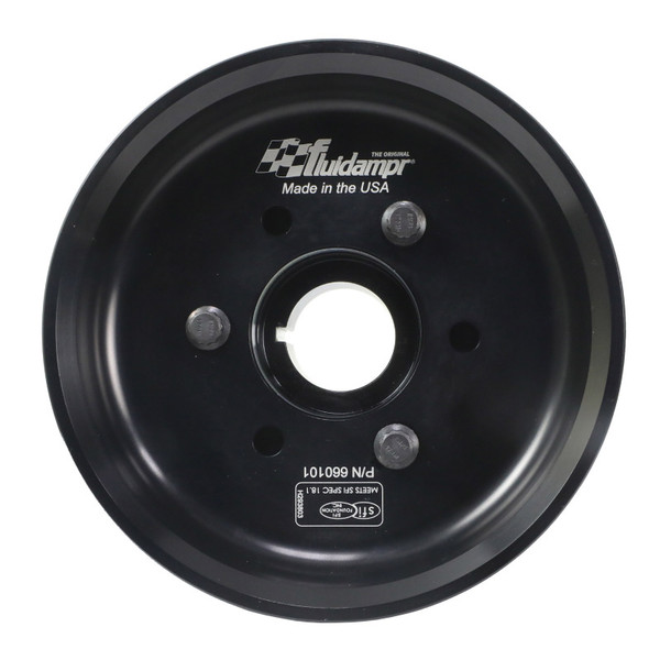 Protect your engine. Modifications can compromise your stock harmonic balancer. Install a Fluidampr performance damper early for best durability. Superior viscous damper design controls harmful torsional vibration across the entire rpm range. Reduce wear on engine components. Reduce risk of crankshaft failure. Improve timing. Unleash lost torque and horsepower. Precision CNC machined and balanced high-grade steel components. Corrosion resistant black zinc finish with engraved markings. No maintenance required. Trusted by leading engine builders worldwide. SFI 18.1 certified. Made in USA.