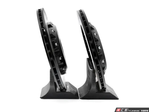• Overall weight savings: This particular set of ECS 2-Piece front and rear rotors weigh only 65.70lbs compared to a stock one piece 340mm and 310mm rotors at 78.80lbs. Lighter rotors reduce unsprung weight and rotational mass to improve vehicle acceleration, braking and suspension performance.