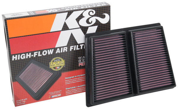 K&N washable, reusable High-Flow Air Filters feature a state-of-the-art design of layered, oiled cotton media engineered to improve airflow and capture contaminants, and are designed to provide an increase in horsepower. Each performance air filter is reusable, engineered to last for the entire lifespan of your vehicle, and backed by K&N's 10-Year/Million Mile Limited Warranty. K&N drop-in replacement filters are designed to install easily into your factory air box. Upgrade today and start enjoying superior airflow and superior performance from K&N's most popular product!