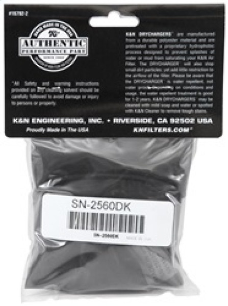 K&N Filter Wrap Drycharger Oval Tapered Black - 3.25in Base I/S Width x 2.5in Top I/S Width x 7in H - SN-2560DK