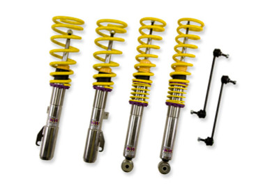 Cutting-edge motorsports technology for more performance on the road. Like every suspension product developed by KW automotive, the suspension manufacturer, and manufactured in Germany, the KW V3 Coilover suspension kit also provides a significant plus in safety reserves in road traffic. Thanks to the chassis with its high-quality dampers, springs, and elastomer spring elements, pitching and rolling movements during load changes such as evasive maneuvers, cornering, acceleration, and braking are significantly reduced. The braking distances are also shortened. Thanks to improved support and feedback, drivers not only feel safer but driving in everyday life becomes even safer. With compression and rebound stage damping, that can be set separately and independently of each other, the damper setup can be customized to your personal driving preferences or vehicle changes such as weight, tire characteristics, or altered vehicle rigidity. True performance optimization is only possible with this unique, patented system. For example, this allows the compression damping force to be increased and get more grip from the tires, to improve cornering behavior and reduce squat without simultaneously altering the rebound stage damping which is optimally matched to the spring rate, a scenario which results in reduced grip and the associated loss of performance. The KW V3 coilover kit is the ideal tool for performance-oriented drivers and experienced tuning enthusiasts who place a strong emphasis on the overall performance of their suspension. The Variant 3 features patented TVR-A and TVC-A technology that provides separately adjustable rebound and compression damping. The extensive adjustment range of the independently configurable rebound and compression make it easy to directly influence the steering behavior, directional stability, grip and handling characteristics for confident and repeatable results at the limit of driving dynamics.