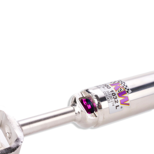 Cutting-edge motorsports technology for more performance on the road. Like every suspension product developed by KW automotive, the suspension manufacturer, and manufactured in Germany, the KW V3 Coilover suspension kit also provides a significant plus in safety reserves in road traffic. Thanks to the chassis with its high-quality dampers, springs, and elastomer spring elements, pitching and rolling movements during load changes such as evasive maneuvers, cornering, acceleration, and braking are significantly reduced. The braking distances are also shortened. Thanks to improved support and feedback, drivers not only feel safer but driving in everyday life becomes even safer. With compression and rebound stage damping, that can be set separately and independently of each other, the damper setup can be customized to your personal driving preferences or vehicle changes such as weight, tire characteristics, or altered vehicle rigidity. True performance optimization is only possible with this unique, patented system. For example, this allows the compression damping force to be increased and get more grip from the tires, to improve cornering behavior and reduce squat without simultaneously altering the rebound stage damping which is optimally matched to the spring rate, a scenario which results in reduced grip and the associated loss of performance. The KW V3 coilover kit is the ideal tool for performance-oriented drivers and experienced tuning enthusiasts who place a strong emphasis on the overall performance of their suspension. The Variant 3 features patented TVR-A and TVC-A technology that provides separately adjustable rebound and compression damping. The extensive adjustment range of the independently configurable rebound and compression make it easy to directly influence the steering behavior, directional stability, grip and handling characteristics for confident and repeatable results at the limit of driving dynamics.