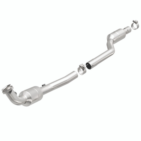 Keep the check engine light off with MagnaFlow OEM Grade Federal/EPA Compliant Direct-Fit Catalytic Converter 51402. With features including free-flowing mandrel-bent tubing and highly corrosion resistant stainless steel construction, easily install this spun body converter yourself using the proper tools, no cutting or welding required. MagnaFlow's state-of-the-art metrology department uses the latest 3D scanning systems during research and development, so you can be confident that your new part will fit and function like the original equipment. By replicating the OE spun body design, the single laser fusion weld greatly reduces the possibility of a leak, and our compact, low-mass design also allows for greater thermal efficiency. This direct-fit catalytic converter is designed specifically for the 2003-2006 Mercedes-Benz SL500 and interchanges with OE parts 230 490 36 19 80 and 230 490 12 19, among others. Hardware is included to eliminate the hassle of working with corroded factory parts. This replacement part is designed to meet or exceed Federal emissions requirements set forth by the EPA, complying with legal standards for OBDII Federally registered vehicles with California or Federal/EPA Emission systems.