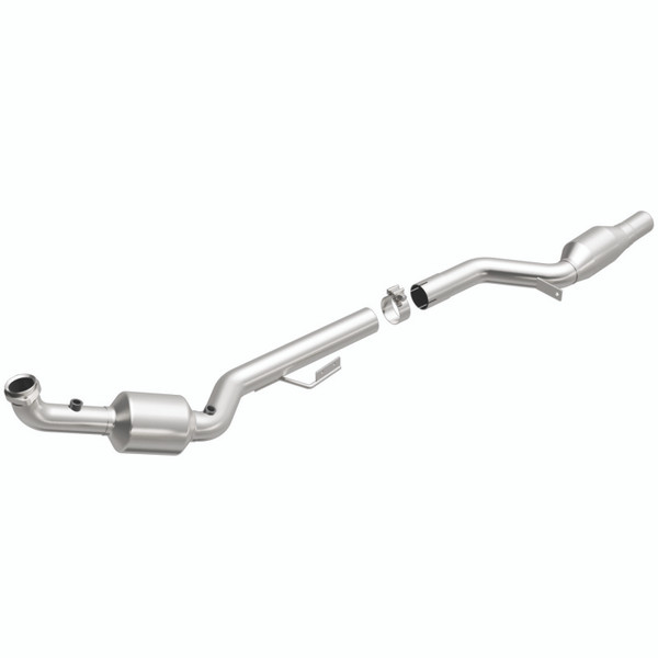 Keep the check engine light off with MagnaFlow OEM Grade Federal/EPA Compliant Direct-Fit Catalytic Converter 51702. With features including free-flowing mandrel-bent tubing and highly corrosion resistant stainless steel construction, easily install this spun body converter yourself using the proper tools, no cutting or welding required. MagnaFlow's state-of-the-art metrology department uses the latest 3D scanning systems during research and development, so you can be confident that your new part will fit and function like the original equipment. By replicating the OE spun body design, the single laser fusion weld greatly reduces the possibility of a leak, and our compact, low-mass design also allows for greater thermal efficiency. This direct-fit catalytic converter is designed specifically for the 2005-2010 Mercedes-Benz SLK55 AMG and interchanges with OE parts 171 490 30 19 80 and 171 490 24 19, among others. Hardware is included to eliminate the hassle of working with corroded factory parts. This replacement part is designed to meet or exceed Federal emissions requirements set forth by the EPA, complying with legal standards for OBDII Federally registered vehicles with California or Federal/EPA Emission systems.