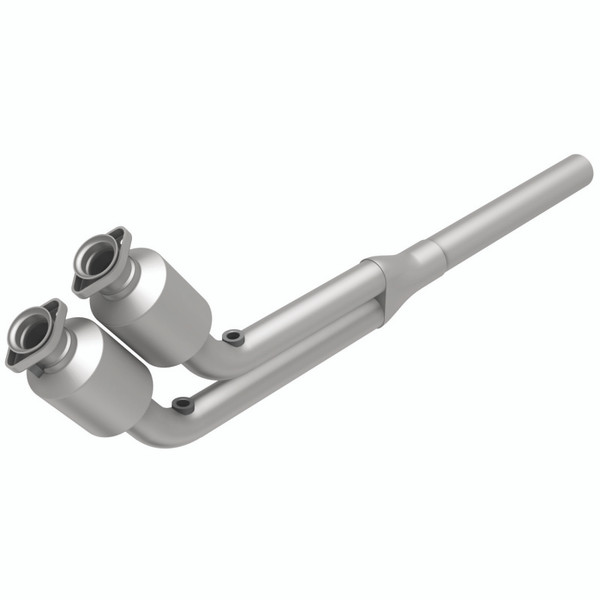 Keep the check engine light off with MagnaFlow HM Grade Federal/EPA Compliant Direct-Fit Catalytic Converter 23069. With features including free-flowing mandrel-bent tubing and highly corrosion resistant stainless steel construction, easily install this spun body converter yourself using the proper tools, no cutting or welding required. MagnaFlow's state-of-the-art metrology department uses the latest 3D scanning systems during research and development, so you can be confident that your new part will fit and function like the original equipment. By replicating the OE spun body design, the single laser fusion weld greatly reduces the possibility of a leak, and our compact, low-mass design also allows for greater thermal efficiency. This direct-fit catalytic converter is designed specifically for the 1993-1996 Jaguar XJS and interchanges with OE parts JLM20704 and CBC7313, among others. Hardware is included to eliminate the hassle of working with corroded factory parts. This replacement part is designed to meet or exceed Federal emissions requirements set forth by the EPA, complying with legal standards for OBDII Federally registered vehicles with Federal/EPA Emission systems.