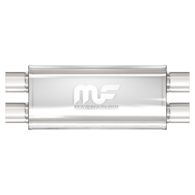 The MagnaFlow 5 X 8in. Oval Straight-Through Performance Exhaust Muffler 12288 is engineered to enhance your ride with a healthy helping of our signature exhaust sound and dyno-proven performance thanks to its free-flowing straight-through perforated stainless steel core wrapped in stainless steel mesh and acoustic fiber fill. The reversible, universal 3/2.5in. diameter inlet/outlet Straight-Through layout allows you to install it in whatever orientation and configuration you see fit. However, professional installation is highly recommended. Muffler 12288s weight-optimized 5x8x18in. oval-shaped body features a satin finish that elevates the overall aesthetics of your current exhaust setup. 12288 is made of durable, corrosion resistant stainless steel and produced using cutting-edge CNC precision robotic manufacturing techniques, all backed by MagnaFlow's limited lifetime construction warranty.