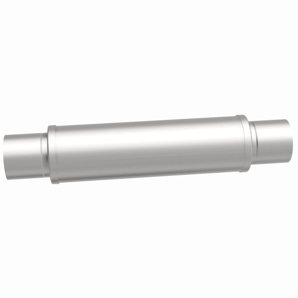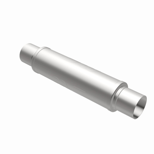 The MagnaFlow 4in. Round Straight-Through Performance Exhaust Muffler 10419 brings our world-famous exhaust sound and dyno-proven performance to your ride in a weight-optimized 4x4x14in. package with a premium satin finish. The straight-through free-flowing design of this round-bodied muffler's reversible, universal 3/3in. diameter inlet/outlet layout enables versatile installation options to match the spacing requirements of your vehicle. Due to the cutting and welding involved, professional installation is highly recommended. Internally, 10419 utilizes a perforated stainless steel core wrapped in stainless steel mesh and acoustic fiber fill to achieve a powerful, resonant tone. This muffler is made of durable, corrosion resistant stainless steel and produced using cutting-edge CNC precision robotic manufacturing techniques, all backed by MagnaFlow's limited lifetime construction warranty.