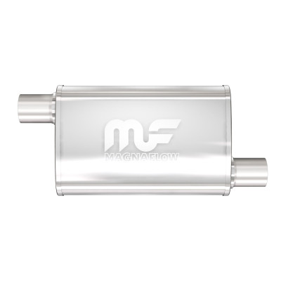 The MagnaFlow 4 X 9in. Oval Straight-Through Performance Exhaust Muffler 14377 brings our signature sound and dyno-proven performance to your ride with a free-flowing straight-through perforated stainless steel core wrapped in stainless steel mesh and acoustic fiber fill, and a weight-optimized, reversible 2.5/2.5in. diameter inlet/outlet Straight-Through layout. Muffler 14377s 4x9x14in. oval-shaped body features a premium, brushed finish for an elevated aesthetic that matches the enhanced exhaust note and performance that this muffler brings to your ride. The universal design allows for flexible placement of 14377 within your exhaust system to meet the specific spacing requirements of your vehicle, although professional installation is highly recommended. 14377 is made of durable, corrosion resistant stainless steel and produced using cutting-edge CNC precision robotic manufacturing techniques, all backed by MagnaFlow's limited lifetime construction warranty.