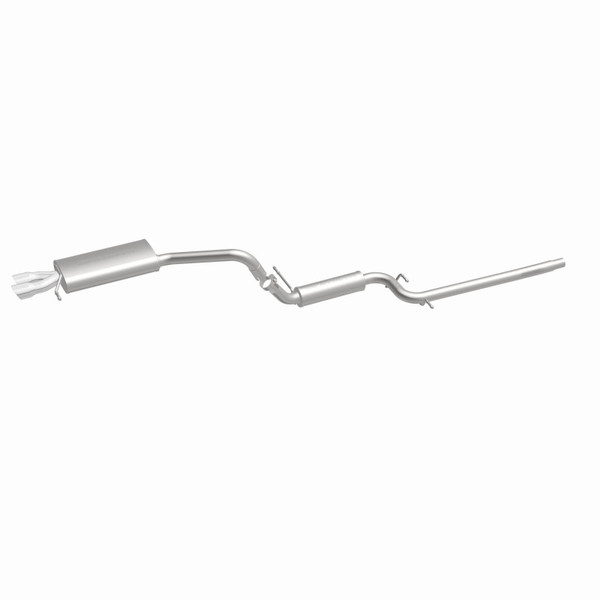 The MagnaFlow 2011-2014 Volkswagen Jetta Touring Series Cat-Back Performance Exhaust System 15486 is the perfect partner for your 2.0L 2011-2014 Volkswagen Jetta to take on a grand tour or a weekend cruise thanks to the powerful, resonant exhaust note and dyno-proven performance it brings to the table. This durable, corrosion resistant stainless steel exhaust kit is engineered to conquer the miles with ease while enhancing your driving experience with Moderate exterior and Mild interior sound levels generated through its fast-flowing, mandrel bent 2.25in. main piping and 2 Straight-Through muffler that terminate in a Dual Straight Driver Side Rear exit with 3in. Polished Welded-On Double Wall Angle Cut Rolled Edge tips. 15486 features a cat-back layout design to replace your import's stock exhaust components from the catalytic converter on back. This Volkswagen Jetta exhaust system is compatible with 2011-2014 engines. The use of extensive 3D scans made during the development process has resulted in an easy-to-install, direct-fit design that fits your Volkswagen Jetta like a glove. 15486 is produced using CNC precision robotic manufacturing techniques and is backed by MagnaFlow's limited lifetime construction warranty.