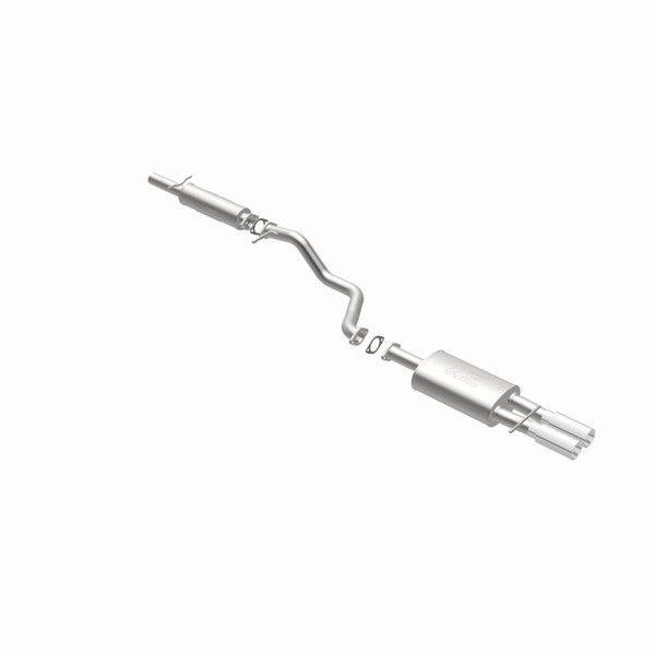 The MagnaFlow Touring Series Cat-Back Performance Exhaust System 15745 is the perfect partner for your 1.8L, 2.8L 1999-2005 Volkswagen to take on a grand tour or a weekend cruise thanks to the powerful, resonant exhaust note and dyno-proven performance it brings to the table. This durable, corrosion resistant stainless steel exhaust kit is engineered to conquer the miles with ease while enhancing your driving experience with Moderate exterior and Mild interior sound levels generated through its fast-flowing, mandrel bent 2.25in. main piping and 2 Straight-Through muffler that terminate in a Dual Straight Driver Side Rear exit with 3in. Polished Welded-On Double Wall Straight Cut Rolled Edge tips. 15745 features a cat-back layout design to replace your import's stock exhaust components from the catalytic converter on back. This Volkswagen exhaust system is compatible with 1999-2005 engines. The use of extensive 3D scans made during the development process has resulted in an easy-to-install, direct-fit design that fits your Volkswagen like a glove. 15745 is produced using CNC precision robotic manufacturing techniques and is backed by MagnaFlow's limited lifetime construction warranty.