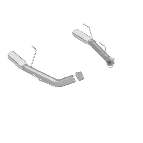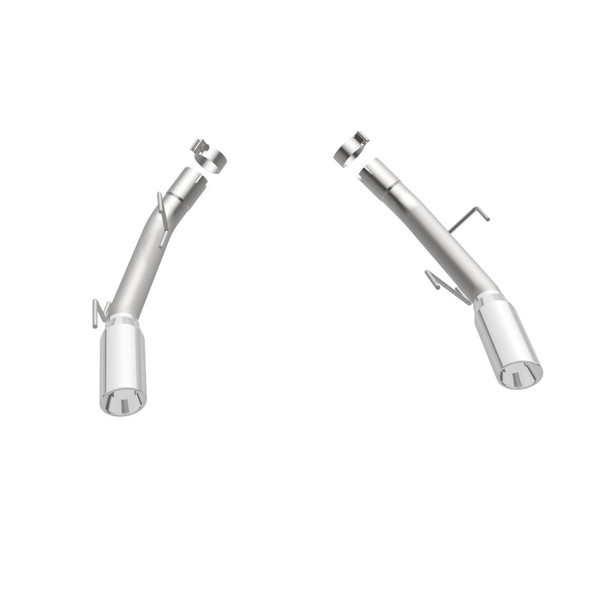 The MagnaFlow 2005-2009 Ford Mustang Race Series Axle-Back Performance Exhaust System 16843 doesn't leave any performance on the table with a race-ready, light weight, dyno-proven design ready to help your 4.6L, 5.4L 2005-2009 Ford Mustang take on any pretenders, whether on the track or the street. Exhaust kit 16843 is engineered to produce our powerful, resonant signature exhaust note at Very Aggressive exterior and Aggressive interior sound levels with an axle-back layout that replaces your vehicle's exhaust components from near the rear axle on back. Please check to ensure compliance with local noise regulations. This Ford Mustang exhaust kit features fast-flowing mandrel bent 2.5in. diameter main piping that ends in a Dual Split Rear exit with 3.5in. Polished Welded-On Double Wall Angle Cut Rolled Edge tips. Extensive 3D scanning during development and the use of advanced CNC precision robotic manufacturing techniques ensures that 16843's direct-fit design fits so perfectly that you can easily install the system yourself. The durable, corrosion resistant stainless steel construction of exhaust system 16843 is backed by MagnaFlow's limited lifetime warranty.