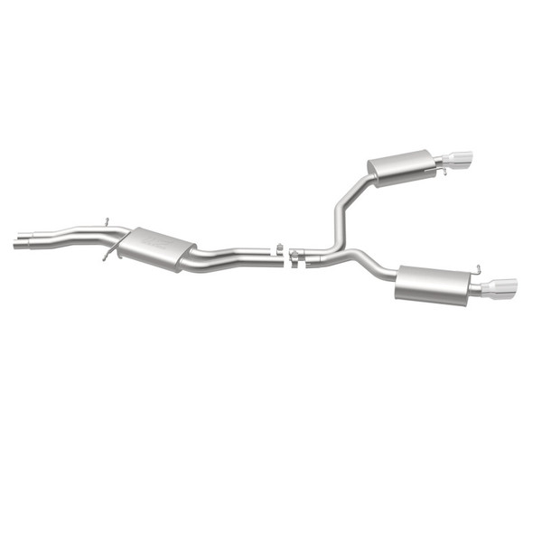 The MagnaFlow Touring Series Cat-Back Performance Exhaust System 19159 is the perfect partner for your 3.0L 2012-2015 Audi to take on a grand tour or a weekend cruise thanks to the powerful, resonant exhaust note and dyno-proven performance it brings to the table. This durable, corrosion resistant stainless steel exhaust kit is engineered to conquer the miles with ease while enhancing your driving experience with Moderate exterior and Mild interior sound levels generated through its fast-flowing, mandrel bent 2.5in. main piping and 3 Straight-Through muffler that terminate in a Dual Split Rear exit with 4in. Polished Welded-On Double Wall Angle Cut Folded Edge tips. 19159 features a cat-back layout design to replace your import's stock exhaust components from the catalytic converter on back. This Audi exhaust system is compatible with 2012-2015 engines. The use of extensive 3D scans made during the development process has resulted in an easy-to-install, direct-fit design that fits your Audi like a glove. 19159 is produced using CNC precision robotic manufacturing techniques and is backed by MagnaFlow's limited lifetime construction warranty.
