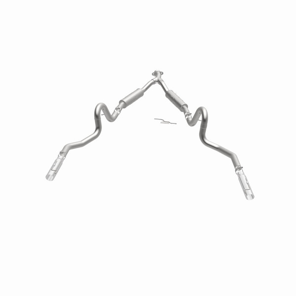 The MagnaFlow 1999-2004 Ford Mustang Street Series Cat-Back Performance Exhaust System 15717 brings out the personality of your 3.8L, 3.9L 1999-2004 Ford Mustang with our signature resonant, powerful engine tone and dyno-proven performance. Thanks to its fast-flowing, mandrel bent 2.5in. main piping and 2 Straight-Through mufflers ending in a Dual Split Rear exit with 3in. Polished Clamp-On Single Wall Angle Cut Cut Edge tips, this Ford Mustang exhaust kit has the performance chops to match its sporty sound and appearance. Upgrade your ride to the next level with an exhaust that has the pipes to put other Ford Mustang's to shame. With this system your vehicle will be producing Moderate exterior and Mild interior sound levels while leaving other cars and trucks feeling envious at every stoplight. Exhaust kit 15717 features a cat-back layout that replaces your ride's stock exhaust components from near the catalytic converter on back. Extensive 3D scanning during development has resulted in a direct-fit design that you can easily install yourself. 15717 is produced using CNC precision robotic manufacturing techniques and is backed by MagnaFlow's 1-year limited finish warranty and limited lifetime construction warranty.