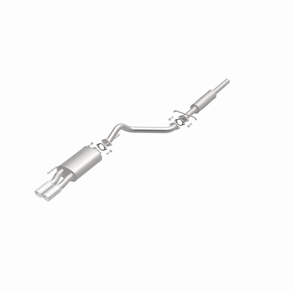 The MagnaFlow 1993-1999 Volkswagen Golf Touring Series Cat-Back Performance Exhaust System 15670 is the perfect partner for your 2.0L, 2.8L 1993-1999 Volkswagen Golf to take on a grand tour or a weekend cruise thanks to the powerful, resonant exhaust note and dyno-proven performance it brings to the table. This durable, corrosion resistant stainless steel exhaust kit is engineered to conquer the miles with ease while enhancing your driving experience with Moderate exterior and Mild interior sound levels generated through its fast-flowing, mandrel bent 2.25in. main piping and 2 Straight-Through muffler that terminate in a Dual Straight Driver Side Rear exit with 3in. Polished Welded-On Single Wall Angle Cut Rolled Edge tips. 15670 features a cat-back layout design to replace your import's stock exhaust components from the catalytic converter on back. This Volkswagen Golf exhaust system is compatible with 1993-1999 engines. The use of extensive 3D scans made during the development process has resulted in an easy-to-install, direct-fit design that fits your Volkswagen Golf like a glove. 15670 is produced using CNC precision robotic manufacturing techniques and is backed by MagnaFlow's limited lifetime construction warranty.