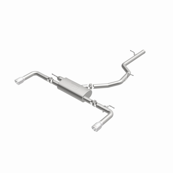 The MagnaFlow 2015-2020 Audi A3 Quattro Touring Series Cat-Back Performance Exhaust System 15352 is the perfect partner for your 2.0L 2015-2020 Audi A3 Quattro to take on a grand tour or a weekend cruise thanks to the powerful, resonant exhaust note and dyno-proven performance it brings to the table. This durable, corrosion resistant stainless steel exhaust kit is engineered to conquer the miles with ease while enhancing your driving experience with Moderate exterior and Mild interior sound levels generated through its fast-flowing, mandrel bent 2.5in. main piping and 1 Straight-Through muffler that terminate in a Dual Split Rear exit with 3.5in. Polished Welded-On Double Wall Angle Cut Folded Edge tips. 15352 features a cat-back layout design to replace your import's stock exhaust components from the catalytic converter on back. This Audi A3 Quattro exhaust system is compatible with 2015-2020 engines. The use of extensive 3D scans made during the development process has resulted in an easy-to-install, direct-fit design that fits your Audi A3 Quattro like a glove. 15352 is produced using CNC precision robotic manufacturing techniques and is backed by MagnaFlow's limited lifetime construction warranty.