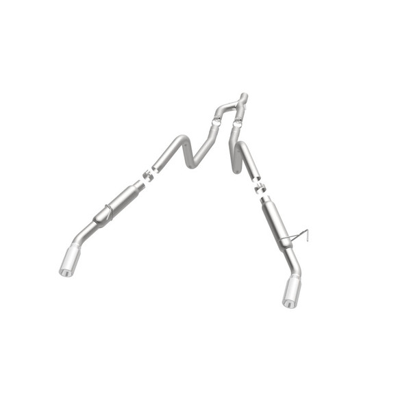 The MagnaFlow 2005-2009 Ford Mustang Competition Series Cat-Back Performance Exhaust System 16605 brings an aggressive, attention-grabbing edge to the deep resonant exhaust note we're so well known for. This exhaust kit is designed to enhance your 4.0L 2005-2009 Ford Mustang with dyno-proven performance made possible thanks to fast-flowing mandrel bent 2.5in. main piping and 2 Straight-Through mufflers ending in a Dual Split Rear exit with 3.5in. Polished Welded-On Double Wall Angle Cut Rolled Edge tips featuring a sporty finish. The exhaust system's cat-back layout replaces your ride's exhaust system from near the catalytic converter on back. Exhaust system 16605 is engineered to make your vehicle's engine produce Aggressive exterior and Moderate interior sound levels, befitting its competition-oriented design. 16605's direct-fit design makes installation a breeze thanks to the use of advanced 3D scanning techniques. This performance exhaust system is made of 100% durable and corrosion-resistant stainless steel and produced using CNC precision robotic manufacturing, all backed by MagnaFlow's limited lifetime warranty. Please check to ensure compliance with local noise regulations.
