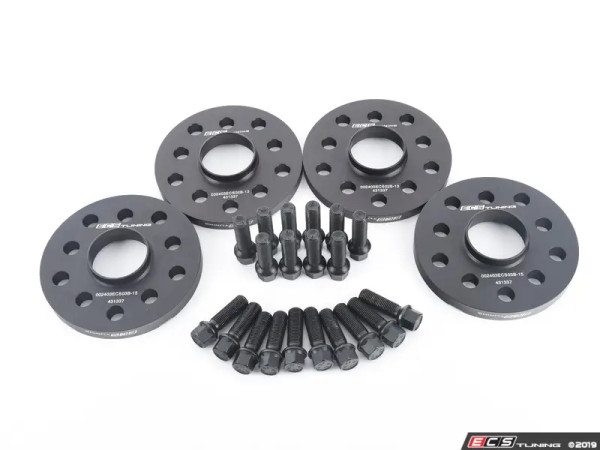Our ECS Tuning wheel spacers are designed and engineered in house by our leading R&D department to make sure of the perfect fit. Each kit is thoroughly checked for clearance of suspension and body components and to carefully minimize tire contact under heavy suspension loads. This kit provides the necessary hub-centric wheel spacers and lug bolts to bring your stock wheels even with the fenders, providing the "flush" look.