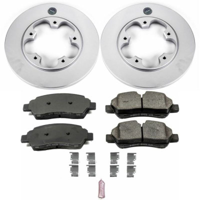 PowerStop is on a mission to deliver an easy way for any driver to upgrade their brakes - no matter where or how they use their vehicle. Our Z17 Evolution Geomet Coated Rotor Brake Kit includes brake pads, rotors, and stainless-steel hardware; everything you need for the affordable, easy replacement brake kit for your daily-driven vehicle. The Z17 Evolution pads feature a low-dust formula, validated through on-vehicle 3rd party tests in the USA, to keep your wheels looking like new. These pads also have multi-layer rubberized shims that insulate noise for virtually silent braking. The rotors are treated with a thin layer of Genuine GEOMET 360 coating to protect against rust and corrosion without diminishing braking performance, and are manufactured to original equipment specifications. If you're looking to refresh the look and braking performance of your old, worn-out brakes, look no further. Say hello to a smooth, quiet commute with the Z17 Evolution Geomet Coated Rotor Brake Kit.