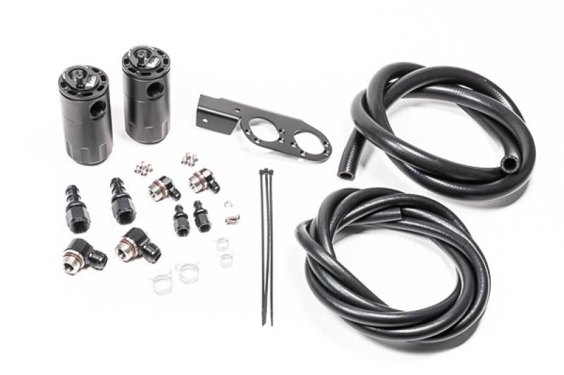 Includes both CCV and PCV catch can kits. All fittings, adapters, hoses and brackets are included. No permanent modification to the vehicle is required. Includes Radium's Fluid Lock catch cans...