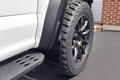 Crafted from premium polyurethane, these UR (as in "you are") mud flaps have been engineered to perform consistently in a variety of environments. Our flexible UV-resistant urethane mud flaps are durably abrasion resistant and long wearing. These UR (as in "you are") premium urethane mud flaps are formed for variably high hot and/or low cold temperatures giving drivers 4 corner protection against salt, spray, paint damaging gravel, tar and grime that prematurely wear the vehicle finish away. Where vinyl and rubber manifests steady, visible material curling and wear over time, strong urethane construction maintains its form through all weather conditions.