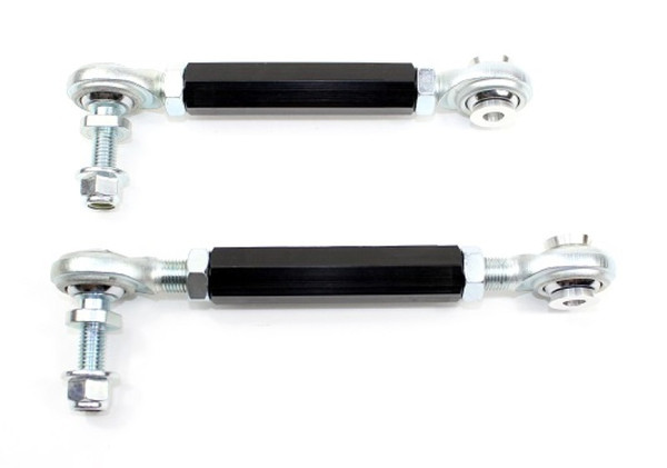 BMW E9X/E8X Rear Endlinks (RE) for the BMW E9X and E8X chassis feature massive Teflon lined FK 1/2" Bearings to provide the highest load capacity for use with stiffer aftermarket sway bars. Custom heat treated Chromoly High Misalignment studs connect to the sway bar and offer extreme articulation capability (65deg) to prevent the endlink from binding when used with different adjustment holes on aftermarket sway bars. Our Endlinks are length adjustable to eliminate preload on the sway bars, which can result from uneven settling of springs or uneven suspension heights from corner weighting. Black Anodized 6061-T6 Aluminum turnbuckles work in conjunction with the left and right hand threaded rod ends for simple and precise adjustment. These end links are perfect for street or race applications. Sold as a pair. Made in the USA. Applications: E8X 1 Series BMW M and non M (E81, E82, 128i, 135i) E9X 3 Series BMW M and non M (E90, E91, E92, 328i, 335i, 335d, M3) Need Replacements Rod Ends? SPL Parts Rod Ends - Contact Us Installation Instructions: SPL Parts Rear End Links E9X