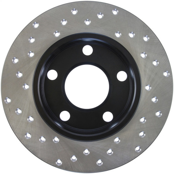 StopTech Drilled Sport Rotors are 1-piece direct replacement brake discs for factory brake systems and stock calipers that look great behind your wheels – and offer significantly improved braking performance. The unique cross-drilling aids with heat and brake dust dispersal; prevents glazing of the pads; adds bite and improves wet and dry braking performance. Built to last; the black e-coating provides protection from corrosion and the high carbon metallurgy (in most applications) offers quieter operation; better crack resistance and increased performance.