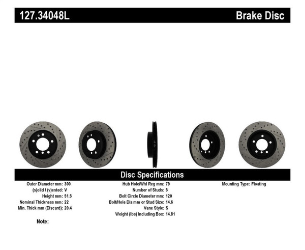 StopTech Drilled and Slotted Sport Rotors are 1-piece direct replacement brake discs for factory brake systems and stock calipers that look great behind your wheels – and offer significantly improved braking performance. The unique cross-drilling and slotting aids with heat and brake dust dispersal; prevents glazing of the pads; adds bite and improves wet and dry braking performance. Built to last; the black e-coating provides protection from corrosion and the high carbon metallurgy (in most applications) offers quieter operation; better crack resistance and increased performance.